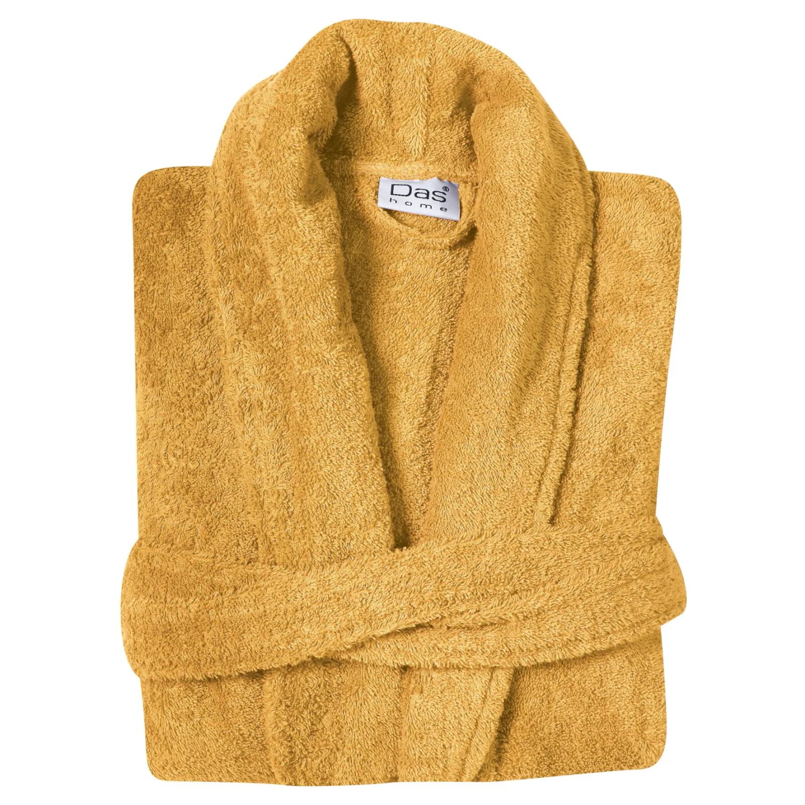 Mπουρνούζι Das της σειράς Happy σε μοντέρνα χρώματα. Είναι από 100% υποαλλεργικό βαμβάκι, ιδιαίτερα απαλό, απορροφητικό και ανθεκτικό στη χρήση, με βάρος 430gr/m2. Das home…makes your house a home! Πλύσιμο στους 40°C. Σιδέρωμα σε μέτρια θερμοκρασία. Όχι χρήση χλωρίου ή λευκαντικού. Χρήση στεγνωτηρίου σε χαμηλή θερμοκρασία. Όχι στεγνό καθάρισμα.
