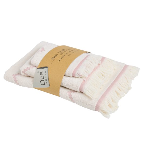Σετ πετσέτες 3 τεμαχίων της σειράς Best, με κρόσια. Είναι από 100% βαμβάκι υψηλής ποιότητας, ιδιαίτερα απαλές, απορροφητικές και ανθεκτικές στην χρήση με βάρος 450gr/m2. Τα χρώματα που χρησιμοποιούνται είναι ανεξίτηλα και υποαλλεργικά. Το σετ αποτελείται από μία πετσέτα μπάνιου 70Χ140εκ., μία πετσέτα προσώπου 50Χ90εκ. και μία πετσέτα χεριών 30Χ50εκ. Das home…makes your house a home!