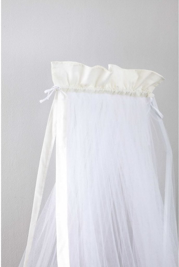 Η κουνουπιέρα Nappy Ivory έχει βαμβακερό λευκό βολάν στην κορυφή και ίδιο λευκό φαρδύ ρέλι περιμετρικά, που δένει αρμονικά με την λευκή κουνουπιέρα. Ταιριάζει τόσο σε αγοράκια όσο και σε κοριτσάκια, για μια φωτεινή και γλυκιά αίσθηση στην κούνια και στο βρεφικό δωμάτιο. Το απλό της σχέδιο είναι κατάλληλο για να ταιριάξει εύκολα με οποιαδήποτε διακόσμηση δωματίου και να δώσει ένα αρμονικό αποτέλεσμα που θα βοηθήσει το μωρό να χαλαρώσει και να του χαρίσει έναν ήρεμο ύπνο.