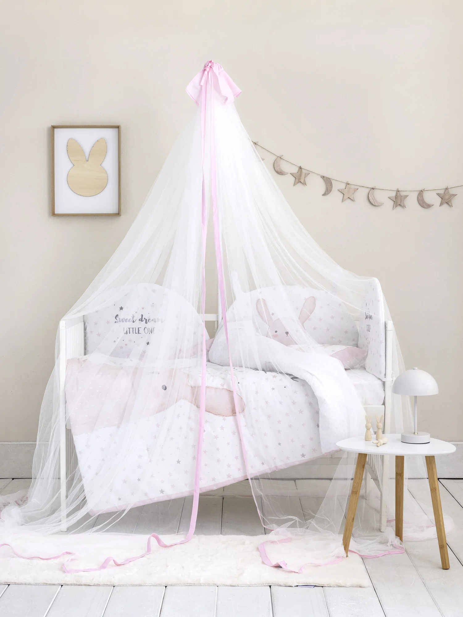 Η κουνουπιέρα Nappy Soft Pink έχει βαμβακερό ροζ βολάν στην κορυφή και ίδιο ροζ φαρδύ ρέλι περιμετρικά, που δένει αρμονικά με την λευκή κουνουπιέρα. Ιδανική για μια φωτεινή και γλυκιά αίσθηση στην κούνια και στο βρεφικό δωμάτιο. Το απλό της σχέδιο είναι κατάλληλο για να ταιριάξει εύκολα με οποιαδήποτε διακόσμηση δωματίου και να δώσει ένα αρμονικό αποτέλεσμα που θα βοηθήσει το μωρό να χαλαρώσει και να του χαρίσει έναν ήρεμο ύπνο.