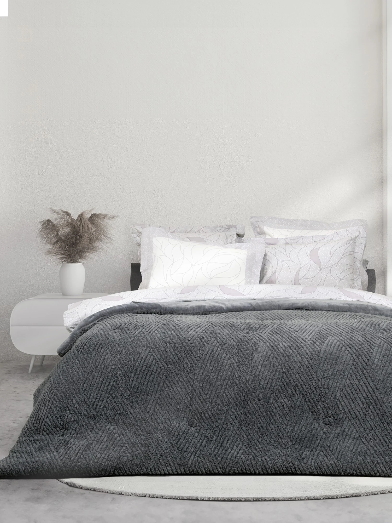 Το Κουβερτοπάπλωμα Velva – Dark Gray διαθέτει στην μπροστινή του πλευρά sherpa με γεωμετρικό jacquard σχέδιο, που το καθιστά ιδανικό για όσους επιθυμούν ένα μοντέρνο αλλά και διαχρονικό κομμάτι στον χώρο τους. Η πίσω όψη του, κατασκευασμένη από απαλό coral fleece, προσφέρει εξαιρετική θερμομόνωση και άνεση. Συνδυάζει με τον καλύτερο τρόπο, τη ζεστασιά μιας κουβέρτας και την κάλυψη ενός παπλώματος. Το σκούρο γκρι χρώμα του προσδίδει δυναμισμό στον χώρο και συνδυάζεται εύκολα με πολλά χρώματα και στυλ. Επιλέξτε το για ένα πραγματικό χουχούλιασμα στο κρεβάτι σας.