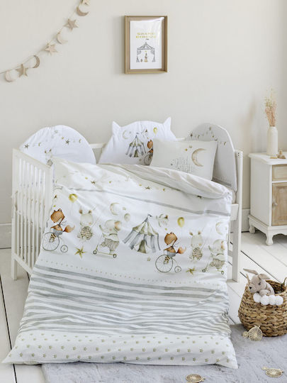 Βρεφική πάντα για την κούνια από την εταιρεία Nima. Σε εκρού χρώμα με γκρι-πολύχρωμες λεπτομέρειες και σχέδιο με ζωάκια. Το εξωτερικό ύφασμα είναι 100% βαμβάκι 144 κλωστών, απαλό και ανθεκτικό. Εσωτερικά διαθέτει πολυεστερική βάτα για προστασία του μωρού από χτυπήματα.
