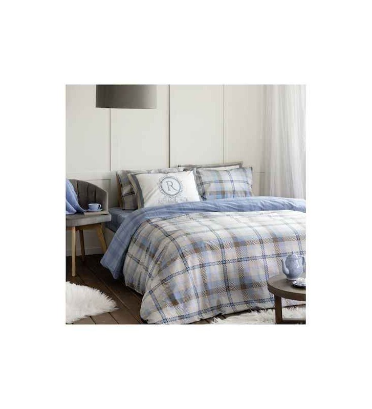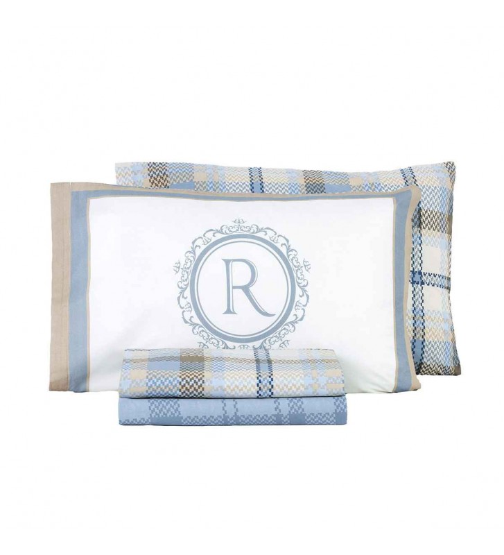 Τα βαμβακερά σεντόνια Henry έχουν διαχρονικό σχέδιο με καρό μοτίβο σε αποχρώσεις του μπλε και καφέ πάνω σε λευκό φόντο. Οι μαξιλαροθήκες του σετ είναι panel με κεντρικό μοτίβο το λογότυπο “R” και τη φράση “ROYAL PLACE” να πλαισιώνονται από κορνίζα στα χρώματα του σχεδίου. Το κατωσέντονο έχει επίσης καρώ μοτίβο σε τόνους του μπλε. Το τριπλό κομποσάρισμα του σετ προσδίδει μια αίσθηση φινέτσας και πολυτέλειας. Επιλέξτε τα και συμπλρώστε την διακόσμηση του χώρου με φυσικά υλικά, όπως το ξύλο για να δώσετε μοναδικό χαρακτήρα στο υπνοδωμάτιο.