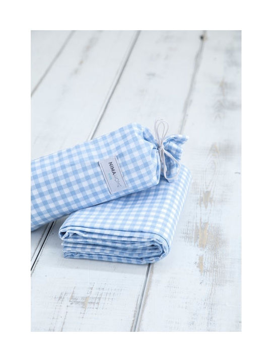 Μεμονωμένο σεντόνι για το παιδικό κρεβάτι από την εταιρεία Nima. Η σύνθεση του είναι 100% βαμβάκι 144 κλωστών σε γαλάζιο χρώμα και καρό σχέδιο.