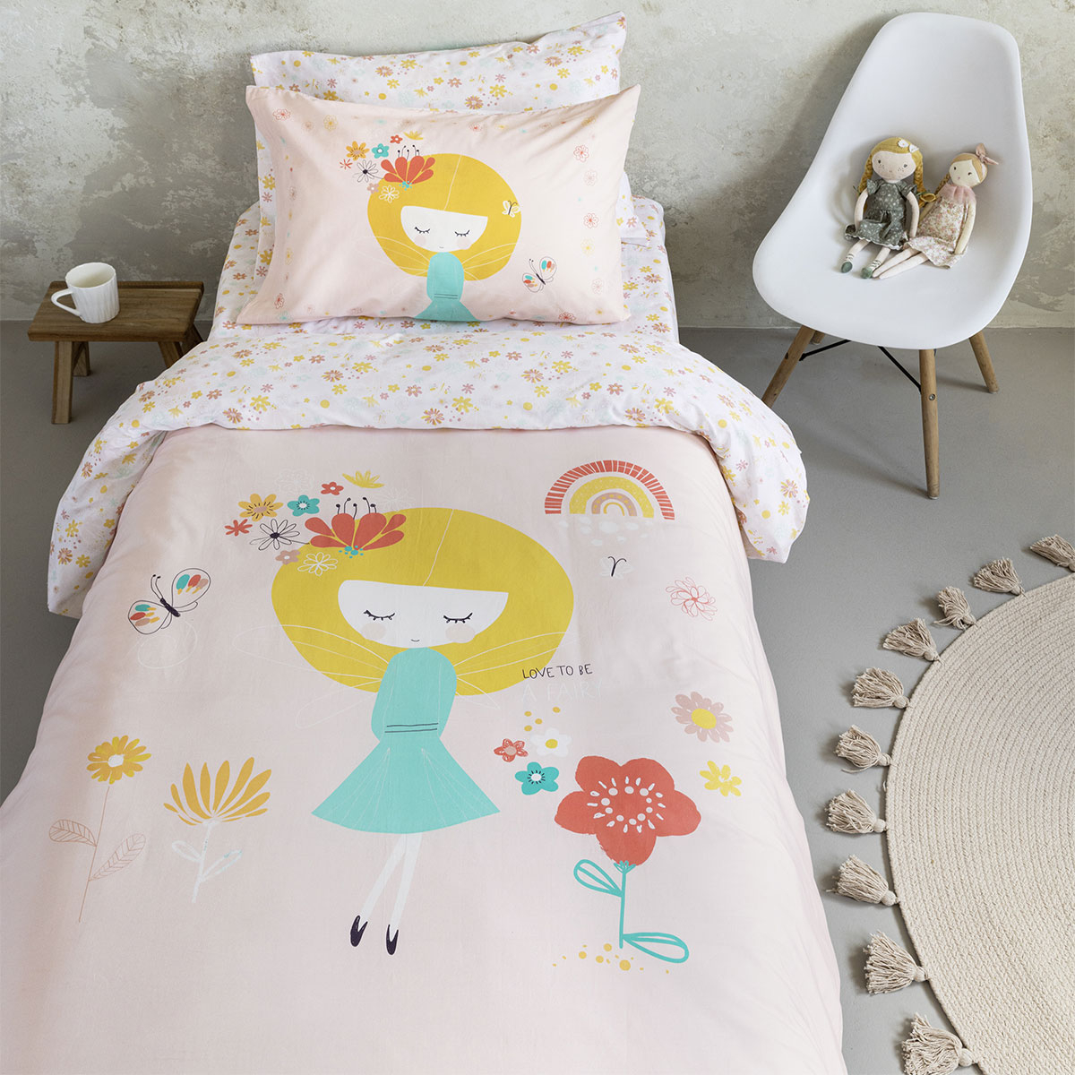 Σετ παιδική μονή παπλωματοθήκη από την εταιρεία Nima. Έχει παιδικό σχέδιο σε ροζ απόχρωση με πολύχρωμες λεπτομέρειες. Το ύφασμα είναι 100% βαμβάκι 144 κλωστών, απαλό και ανθεκτικό. Στο κάτω μέρος κλείνει με φερμουάρ. Η παπλωματοθήκη και η μαξιλαροθήκη φάκελος είναι διπλής όψης με τη μία μεριά να έχει το σχέδιο του πανωσέντονου και την άλλη του κατωσέντονου. Συσκευασία σε υφασμάτινο πουγκί.