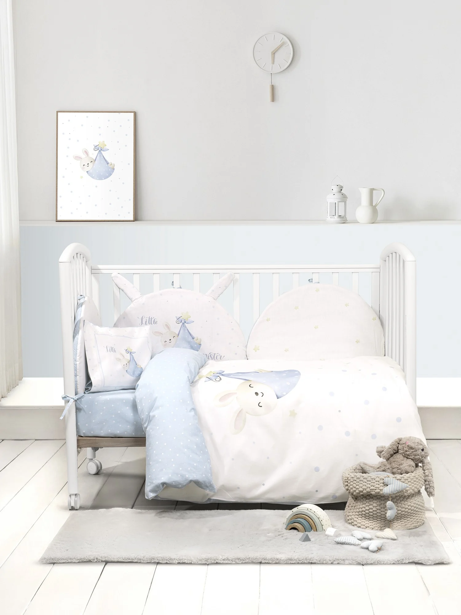 Τα βαμβακερά βρεφικά σεντόνια Little Mister είναι σχεδιασμένα για να δημιουργήσουν μια γλυκιά και παιχνιδιάρικη ατμόσφαιρα στο βρεφικό δωμάτιο. Το σχέδιο είναι πάνελ και επικεντρώνεται σε ένα χαριτωμένο νεογέννητο λαγουδάκι με στρογγυλεμένα αυτιά και ένα γλυκό χαμόγελο. Οι απαλές αποχρώσεις του γαλάζιου και του λευκού συμβάλλουν μια ατμόσφαιρα ηρεμίας και τρυφερότητας. Μια υπέροχη πάνελ μαξιλαροθήκη με το χαριτωμένο λαγουδάκι και τις λεξούλες “Little Mister” γραμμένες καλλιγραφικά, τονίζει την τρυφερότητα του σετ. Δώστε στον μικρό σας μωράκι ένα δωμάτιο που του αξίζει με την βρεφική σειρά Little Mister, που περιλαμβάνει πάντα, κουβερλί, κουβέρτα, παπλωματοθήκη, αλλά και προϊόντα για την προσωπική του υγιεινή, όπως κάπα, μπουρνουζάκι και σετ πετσέτες!